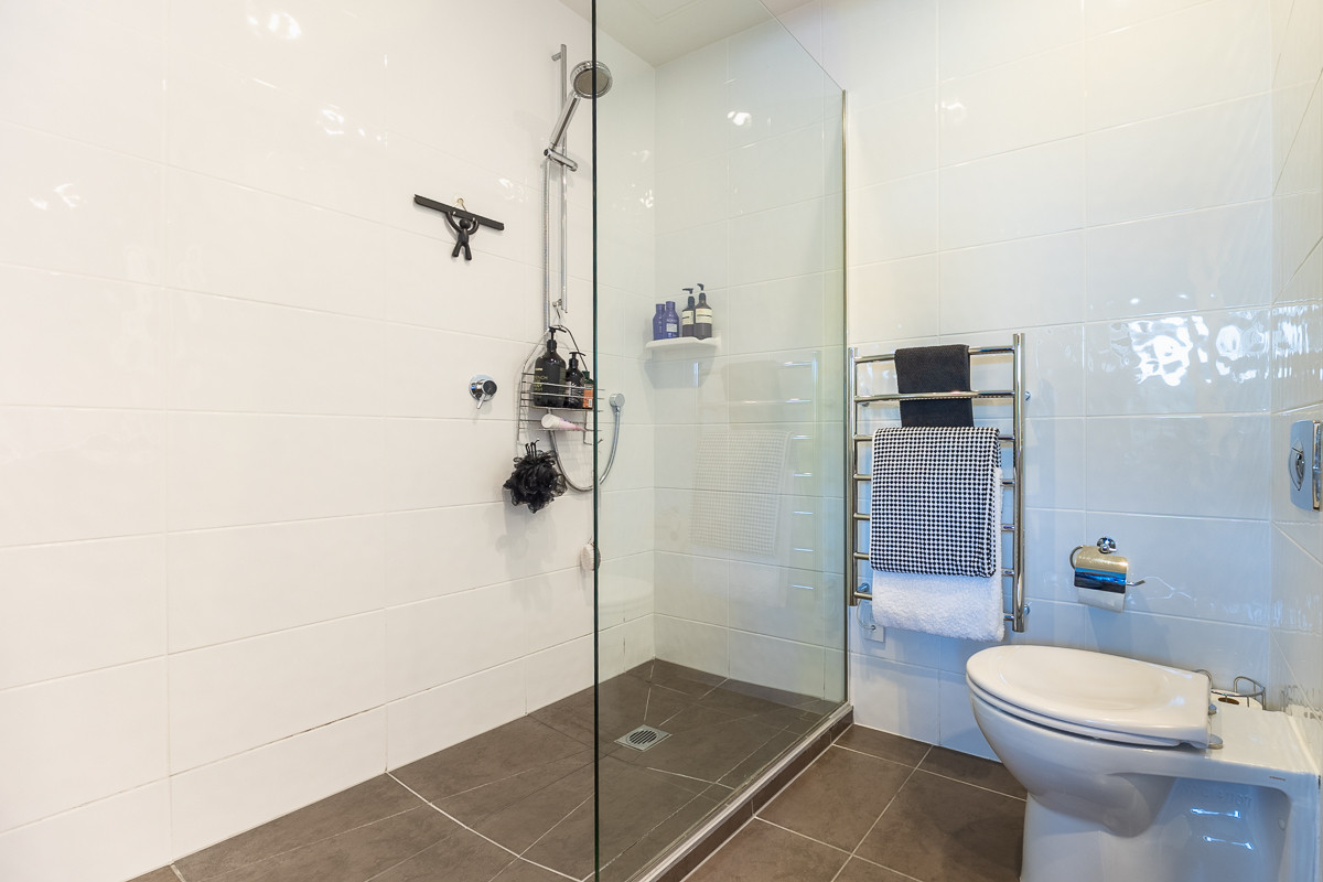 The master suite offers private retreat with walk-in robe and ensuite. The second bedroom also a generous size is perfect for guests and has ample storage. Comfort comes built in—independently controlled underfloor heating in the living, dining and bathrooms, a heat pump, solar water—luxury that feels effortless.
