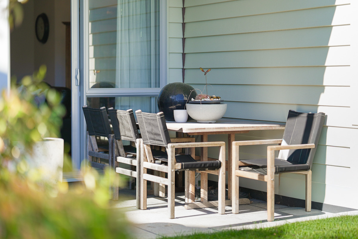 Two decks give you two perspectives: west to the pool and gardens, with glimpses of Kapiti; east to the energy of the village and the hills beyond.